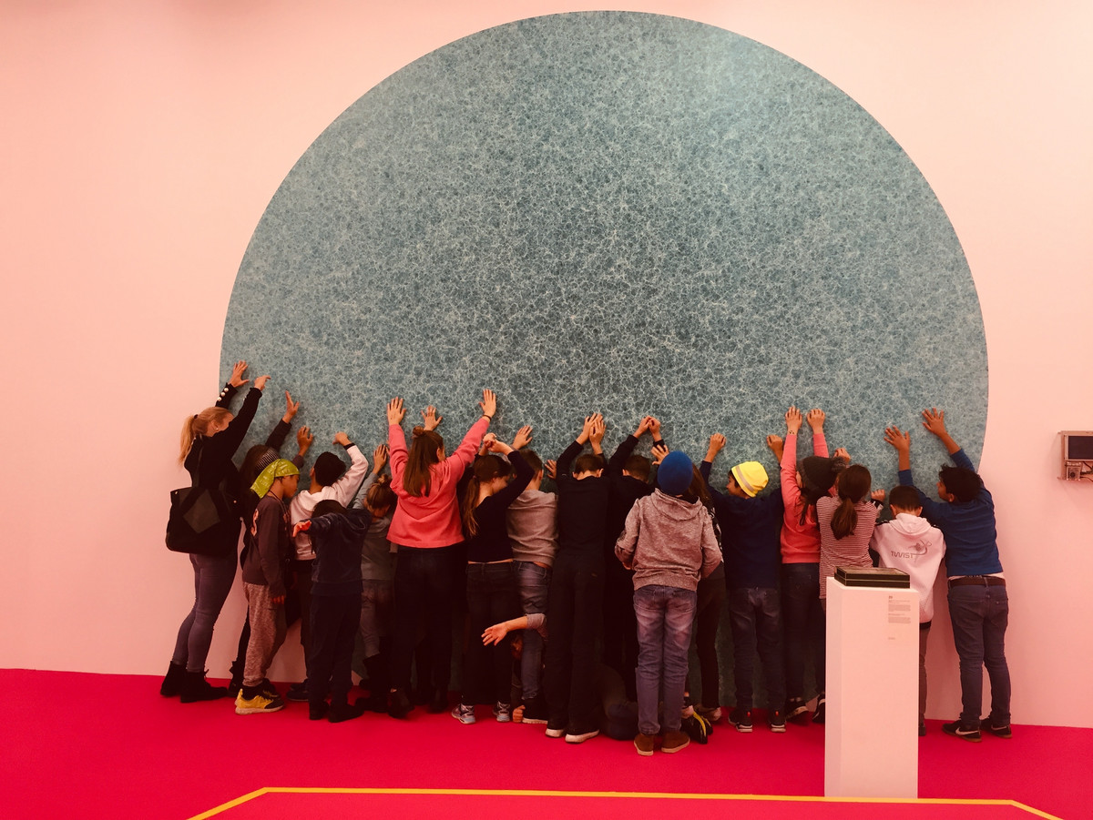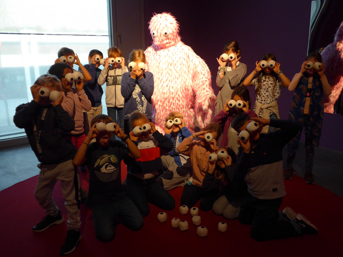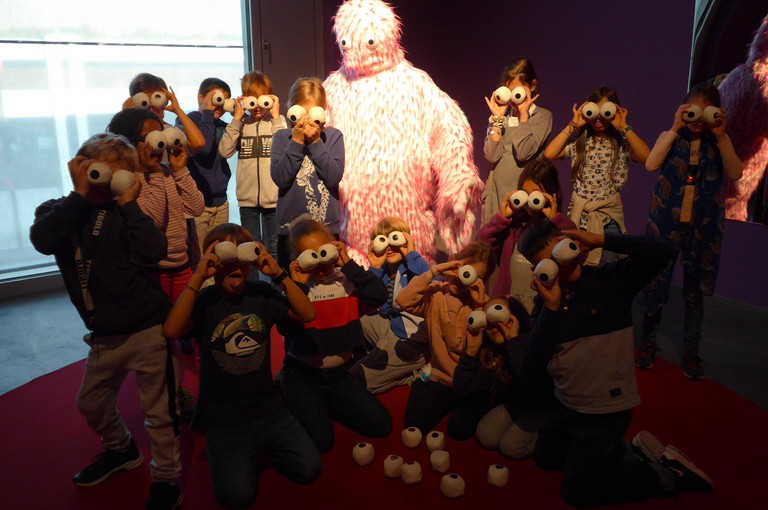 Im stufengerechten Dialog erkunden wir bei einem Rundgang die Ausstellung und widmen uns der praktischen Auseinandersetzung in der Vermittlungswerkstatt, dem Studio.