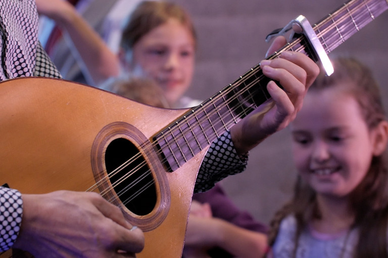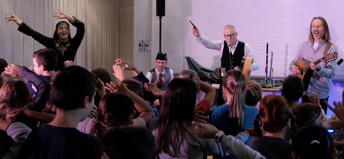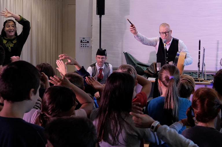 Wenn der Dudelsack erklingt und die «hardshoes» der traditionell gekleideten Tänzerin den Takt vorgeben, tauchen die Kinder ganz in die Welt der keltischen Musik ein. Spätestens wenn Imre, der sonst als Dudelsackspieler auftritt, unerwartet in Street-Montur die Bühne mit Hip-Hop-Tanz erobert und anschliessend die Schüler/innen einlädt, Street-Moves zu einem modern arrangierten «Reel» mitzumachen, gibt es auch für Oberstufenschüler/innen kein Halten mehr.