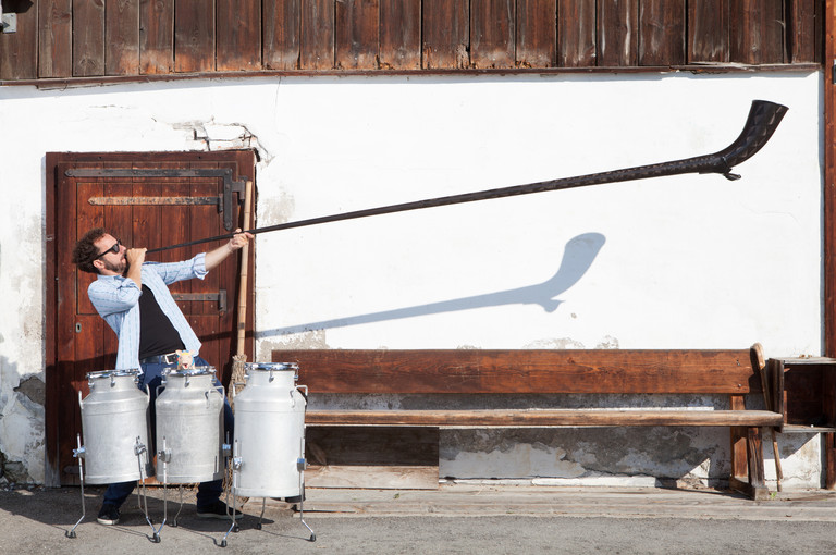 Enrico Lenzin präsentiert sein Soloprogramm «Alphorndisco» und damit das ganze Spektrum seines bemerkenswerten Könnens. Sei es das virtuose Spiel am klassischen Schlagzeug-Set, ausgefallene Rhythmuskaskaden an der Perkussion oder atemberaubende Trommelwirbelstürme – der Musiker aus dem St. Galler Rheintal lässt die Herzen höher schlagen. Und dann setzt er noch einen drauf, schnappt sich eine Kuhglocke, aktiviert sein Loop-Gerät, bläst ins Alphorn, lässt das Talerbecken kreisen, scratcht auf dem Alphornhals einen Beat und kombiniert das Ganze mit Stepptanz.