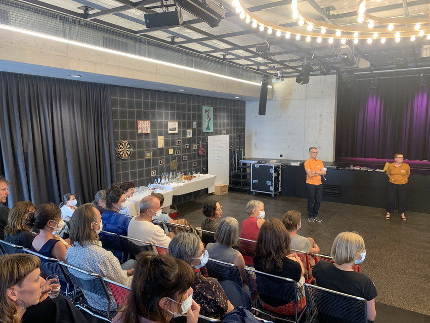 Ausserdem stellte Marcel Wattenhofer, Verantwortlicher Theaterpädagogik bei Schulkultur, die «Wabengruppen» vor – ebenfalls eine Initiative des Kulturschwarms. Es geht darum, dass Kulturschaffende des Netzwerks während des ganzen Jahrs in Kleingruppen den Fachaustausch pflegen können und sich gegenseitig Einblick und Inputs in ihre Praxis gewähren. Drei mögliche Module aus den Bereichen Tanz, Objekttheater und Theaterpädagogik wurden vorgestellt.