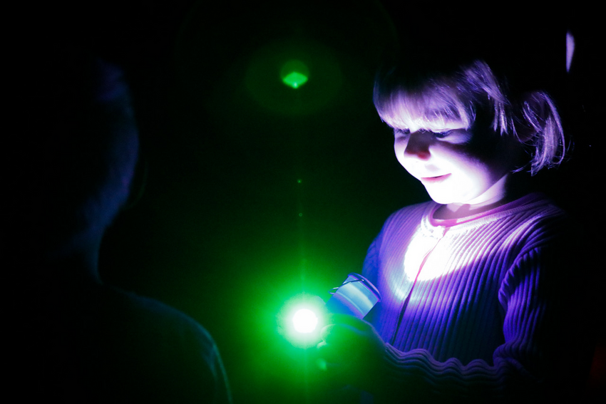 Dunkel. Eine Taschenlampe leuchtet auf. Ihr Licht malt einen Punkt an die Decke, kriecht über die Wand und leuchtet auf eine Hand. Ein Schatten krabbelt über den Boden. Im Leuchten glitzert etwas. In der Welt zwischen Hell und Dunkel verbergen sich Geheimnisse und Poesie. Beim Kunstvermittlungsprojekt «Licht und Schatten» erforschen Kindergartenkinder und drei Performer/innen auf Augenhöhe das Zusammenspiel von Hell und Dunkel und entwickeln gemeinsam eine sinnliche Performance.
