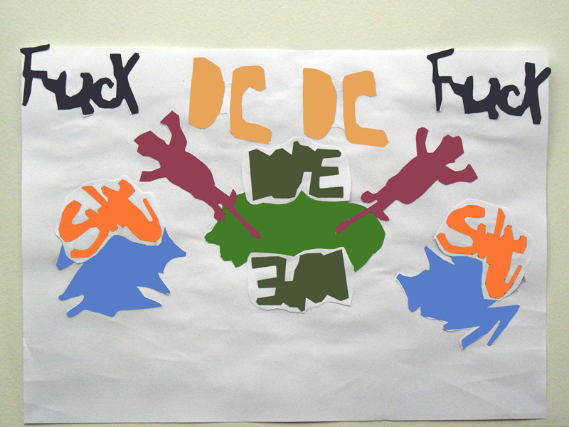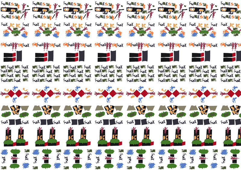 Die Hauptfrage für die Zusammenarbeit mit der Klasse lautet: Können wir Hässliches in Schönes verwandeln? Ja, zum Beispiel, indem die Hässlichkeiten (Schmierereien) gesammelt, multipliziert und in viele bunte Muster verwandelt werden.