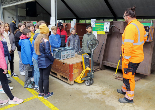 Der Werkhofmitarbeiter Sandro Nützi ist gleichermassen überrascht wie erfreut über den Besuch der Klasse und die praktischen Geschenke für die Werkhof-Mitarbeiter. Herzlichen Dank, liebe Hedinger Klasse, für das 25. und letzte Vespa-Jet-Projekt!