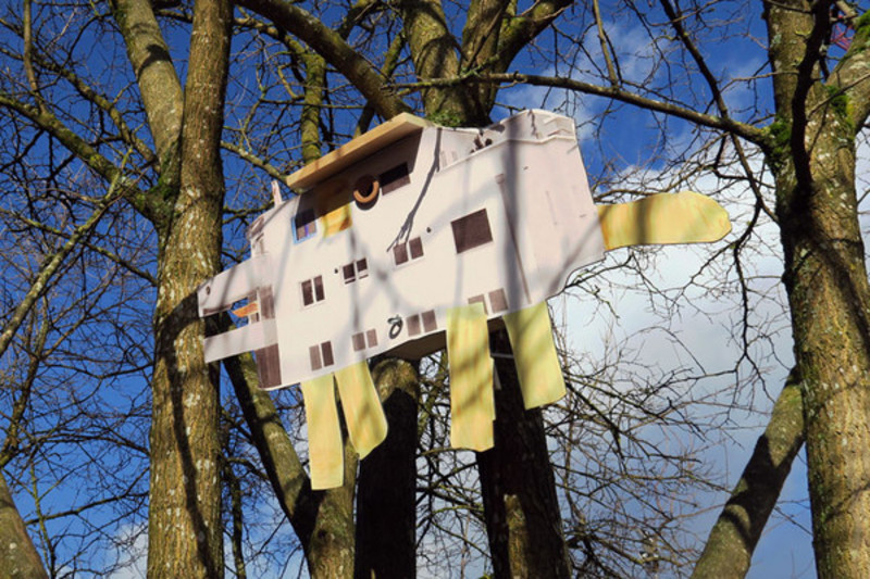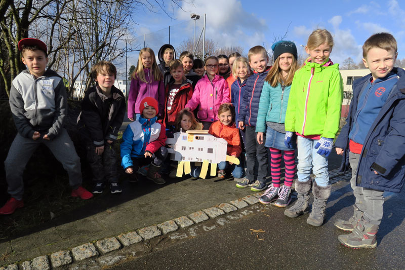 «Ja, aber wie bringen wir das Vogelfutter durch dieses kleine Loch, zweieinhalb Meter über dem Boden?» Die 2.Klässler von Heidi Fäh, Primarschule Mettlen, haben zuerst gewisse Zweifel, ob sich das neue Vogelhäuschen auch wirklich bewirtschaften lässt – bis sich das Missverständnis auflöst: Das kleine Holzhaus mit der vorgeblendeten Hundefassade ist kein Futterhäuschen für die Wintermonate, sondern ein veritabler Nistkasten! Entstanden ist dieser durch die schrittweise und konsequente Umsetzung der Beobachtungen und Untersuchungen, welche die Kinder am benachbarten Mehrfamilienhaus gemacht haben.