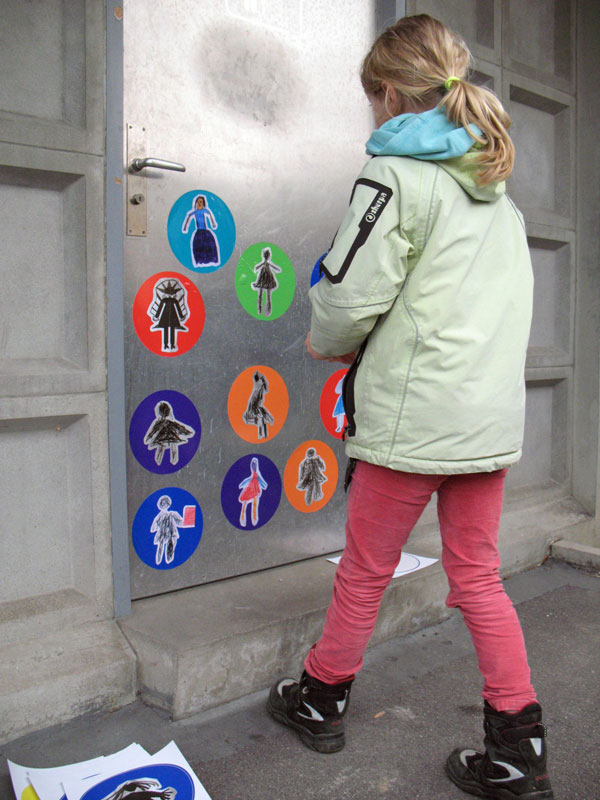Viele Muster! Kaum mehr sichtbare Mann- und Frau-Zeichen! Farblos! Die Themen für den Winterthurer Vespa-Jet-Beitrag sind offensichtlich: Das WC-Häuschen braucht neue Töggel und zwar viele und in den momentanen Lieblingsfarben der Kinder. Das Tiefbauamt und die Denkmalpflege geben grünes Licht für die geplante Aufkleber-Aktion und die 3. Klässler schenken der Stadt Winterthur ein buntes Kunst-und-Bau-Projekt und dem Häuschen neue Aufmerksamkeit.