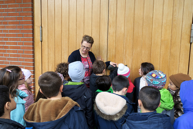 «Stirbt man wirklich, wenn man an ein Kreuz angenagelt wird? Von den Nägeln in den Händen?» Die 1. Klässler bestürmen die Pfarrerin Jolanda Majoleth mit vielen und grundlegenden Fragen zum Leben im Allgemeinen und zur Religion im Speziellen, als sie an diesem Vormittag im November zu Besuch in der Thomaskirche in Wiedikon sind. Die Klasse von Jessica Notz hat sich ein paar Wochen vorher intensiv mit der Architektur dieser Kirche aus den späten 1950er Jahren befasst, die direkt neben ihrem Schulhaus steht.