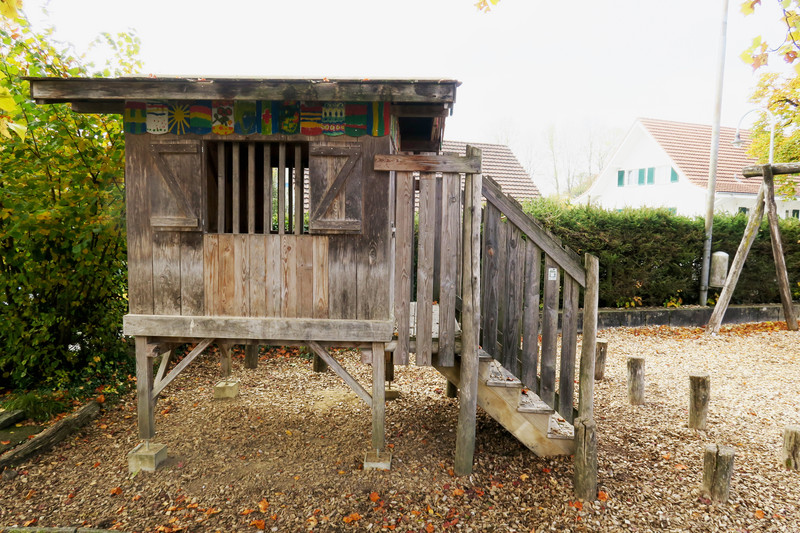 Aber zuerst der Reihe nach: Die Kinder suchen sich ein kleines Gebäude aus, das sie während ihrem Vespa-Jet-Vormittag genauer untersuchen sowie experimentell weiterdenken wollen. Das Häuschen steht am unteren Rand des Schulareals, direkt an der Dorfstrasse: