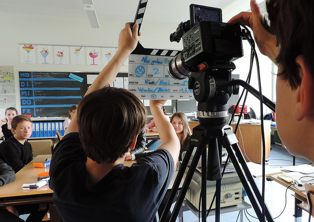 Die Klasse dreht, schneidet und vertont selbständig einen Kurzfilm