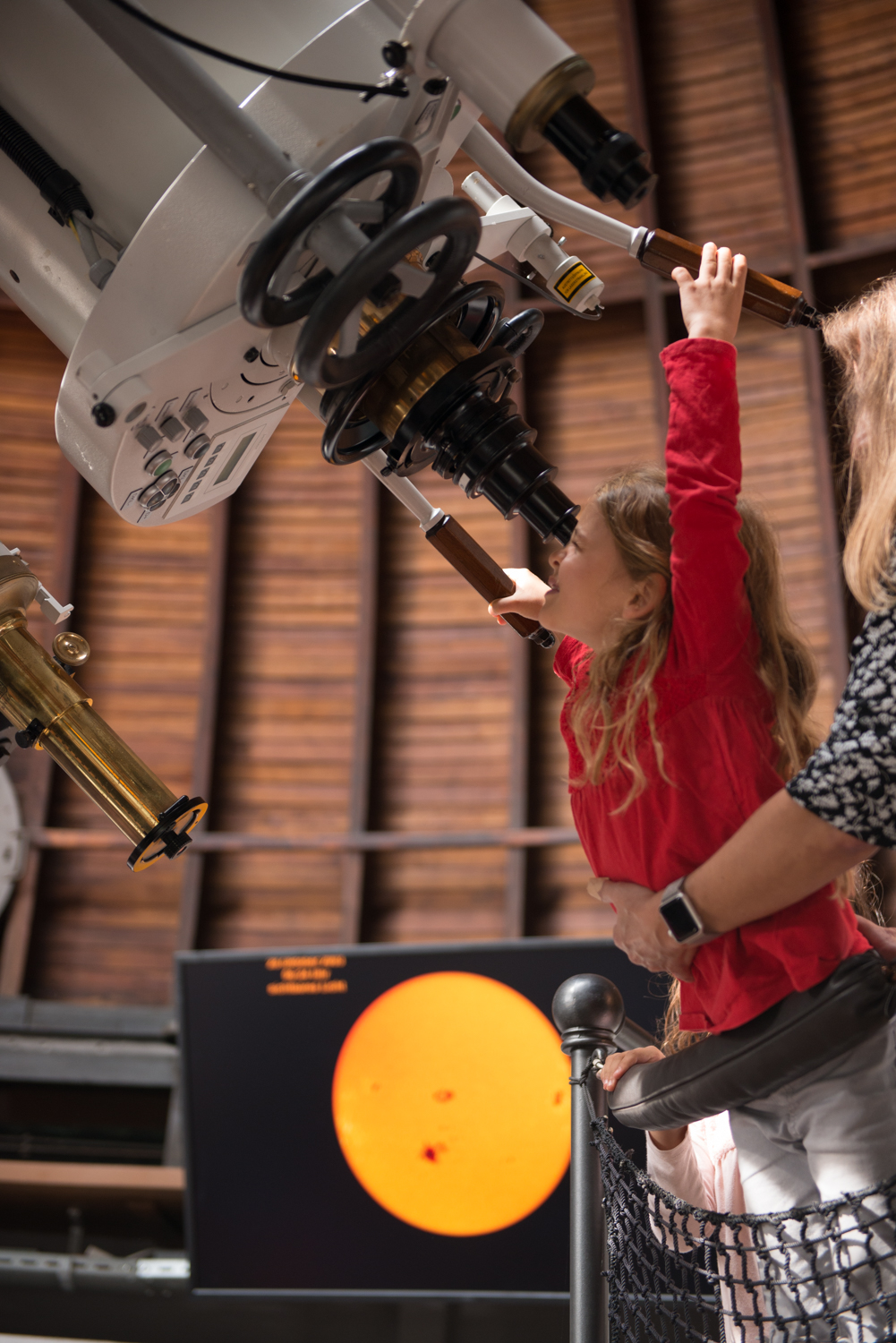 Den Kindern und Jugendlichen werden u.a. Fernrohr und die drehbare Kuppel erklärt, wobei sie auch einmal selber Hand anlegen können.