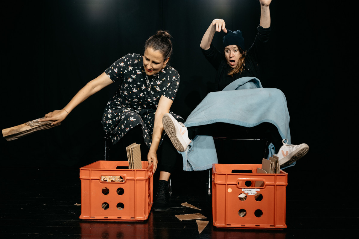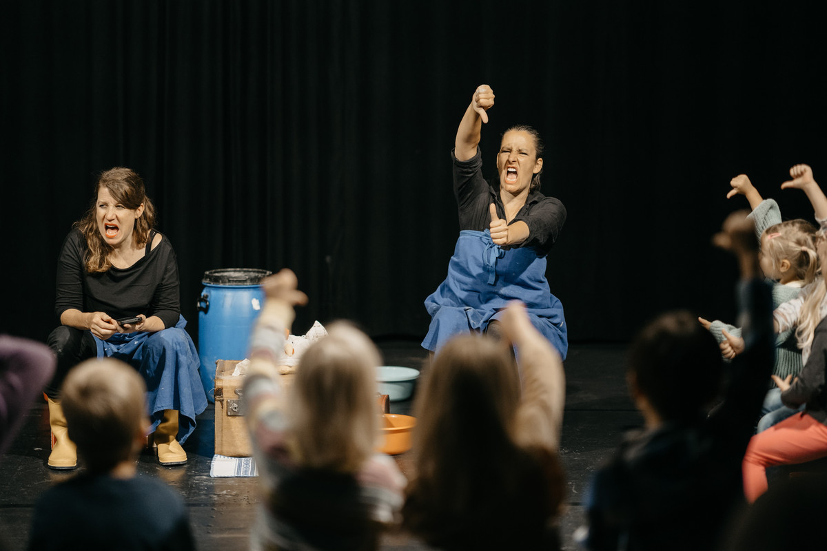 Zwei Erzählkünstlerinnen erzählen, formen, bauen, hämmern, wickeln und sägen eine Geschichte und die Kinder machen gleich mit. Sie färben das Clownkostüm, schleifen Krokodilzähne, wirbeln Schneeflocken durch die Luft und füttern die Tiere im Stall. Gemeinsam bauen alle Figuren und Bühnenbild, spielen Szenen und tauchen tief in die Geschichte ein.