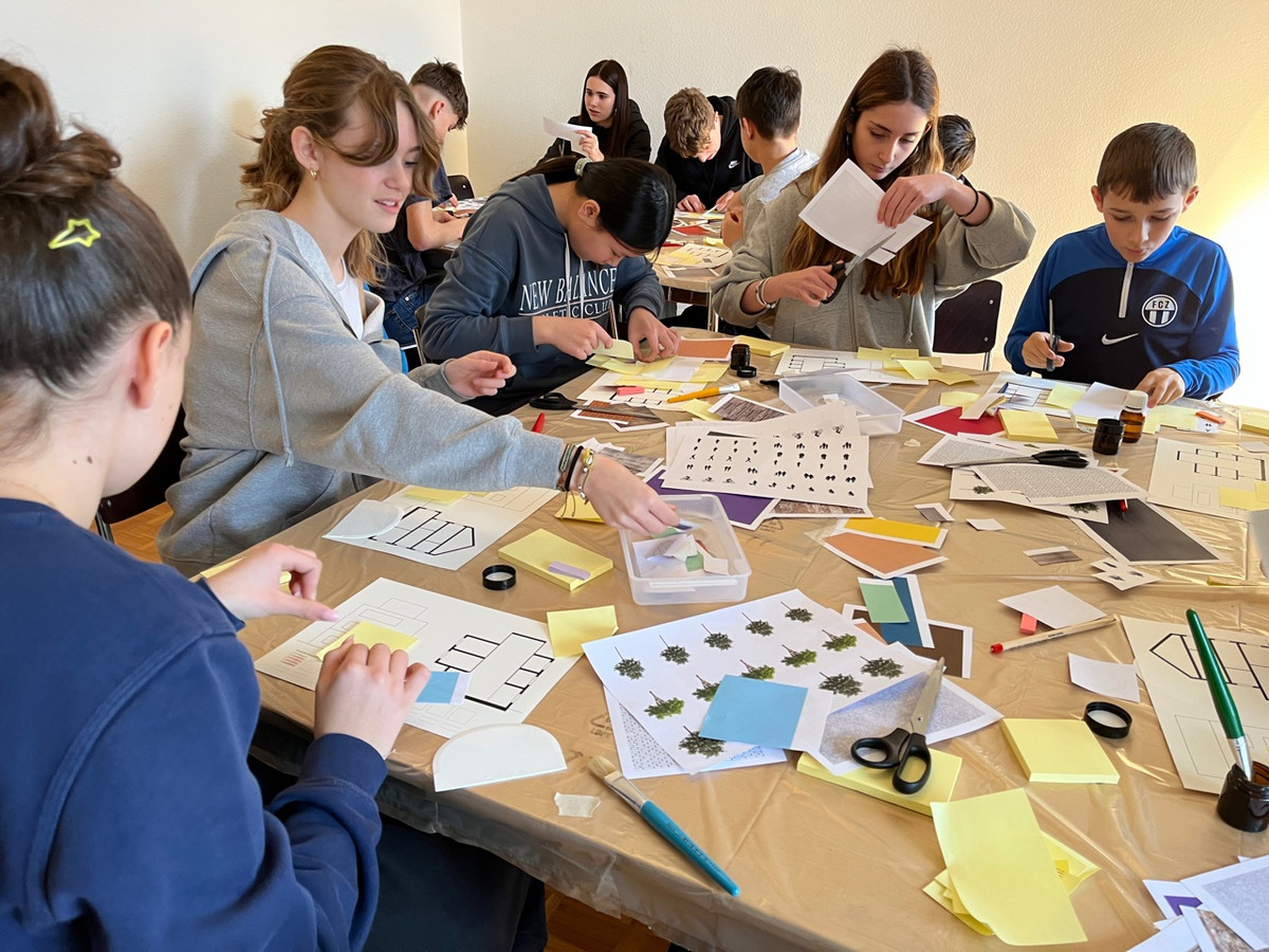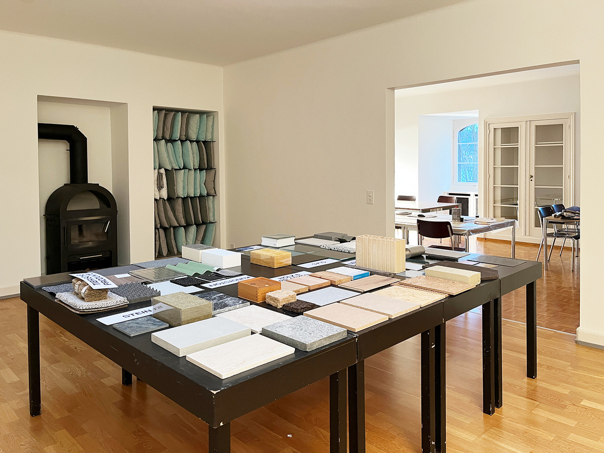 Im Atelier entwickeln wir ein stimmiges Materialkonzept für ein Gebäude und gestalten Fassaden und Innenräume mit Papieren in unterschiedlichen Materialoptiken.