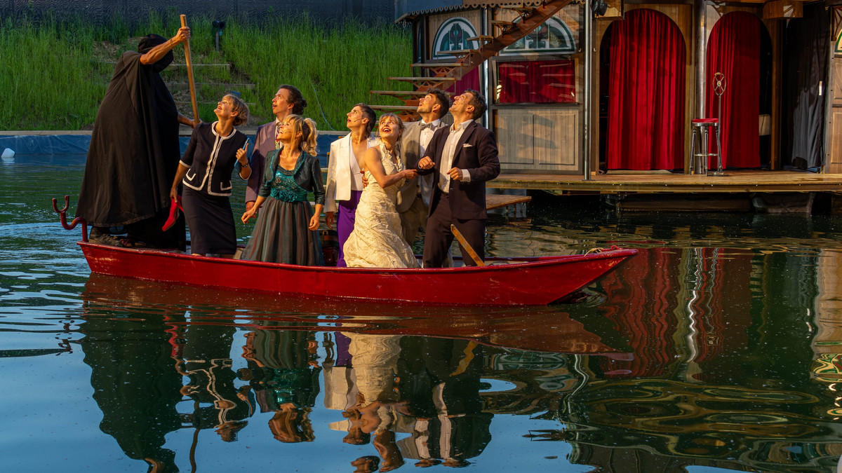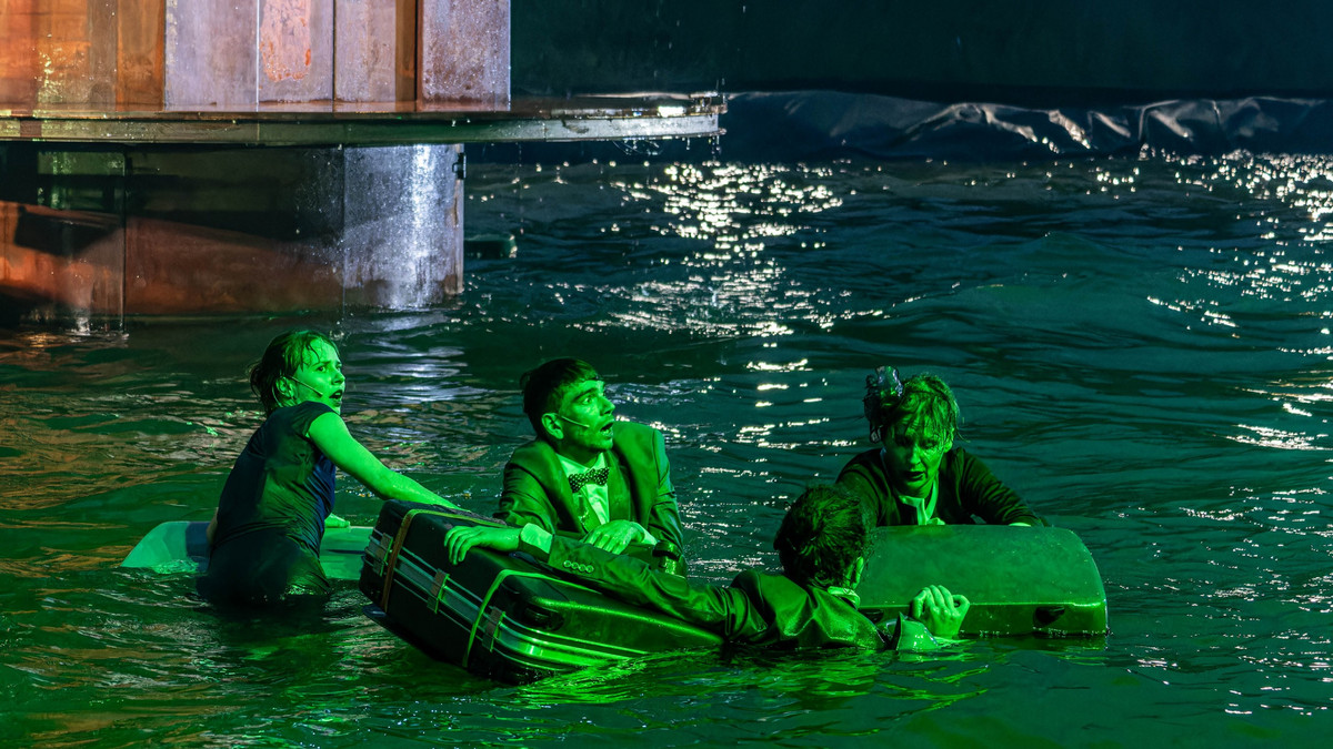 Wasser überall – mittendrin ein Grand Hotel und ein launischer Rezeptionist. Hier strandet eine Hochzeitsgesellschaft und will den schönsten Tag des Lebens feiern. Doch plötzlich ist nichts mehr wie es scheint, die Grenze zwischen Traum und Wirklichkeit verwischt – und der Rezeptionist bittet zum Tanz...