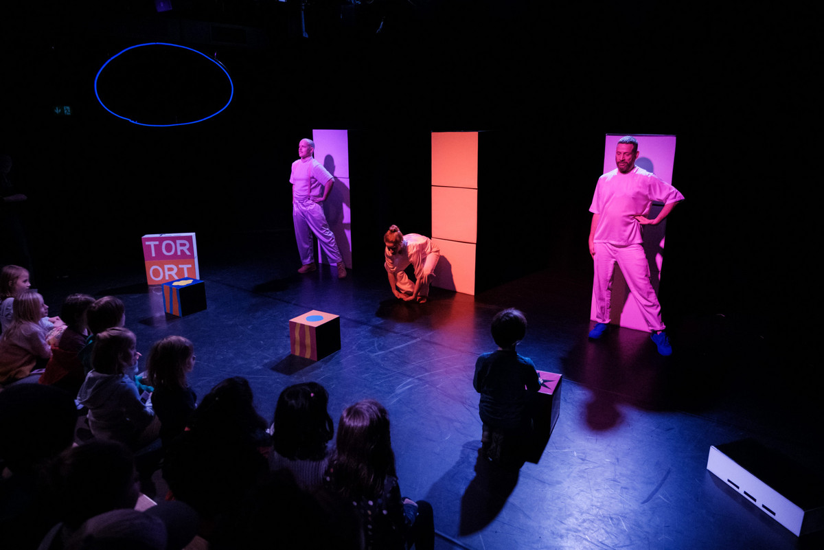 Mit einer Kombination aus Sprache, Bewegung, Gebärdensprache und direkter Beteiligung lädt die Performance Menschen ab sechs Jahren ein, sich auf eine Reise in die Welt der Buchstaben, Wörter und Bedeutungen zu begeben. Das Stück regt die Phantasie der jungen Zuschauer/innen an und bindet sie gleichzeitig als aktiven Teil des Bühnengeschehens ein. Sie können selbst in die Rolle von Forschenden schlüpfen und gemeinsam die Bausteine der Sprache erforschen: Woraus bestehen die Buchstaben? Wie werden Wörter gebildet? Wie verändern sie sich durch Bewegung und Ausdruck? Die Gebärdensprache ist ein wesentlicher Baustein der Geschichte. Das Stück zeigt, wie unterschiedlich Kommunikation und Verständigung funktionieren können. Die spielerische Vermittlung komplexer Zusammenhänge und das phantasievolle Hinterfragen von Kommunikation machen neugierig auf die Vielseitigkeit von Sprache.