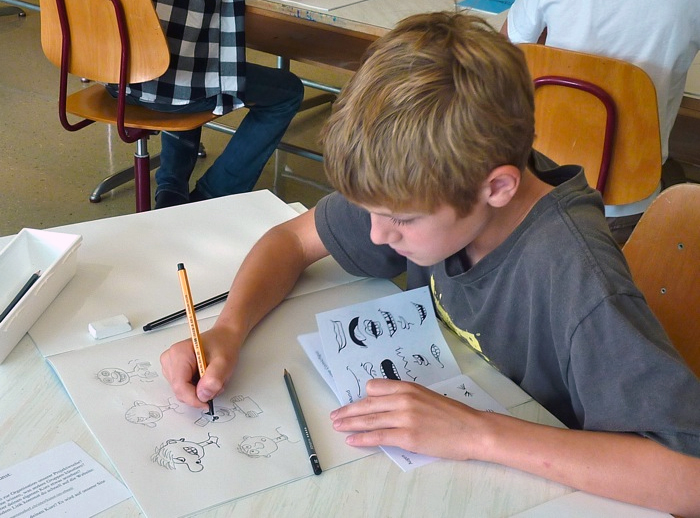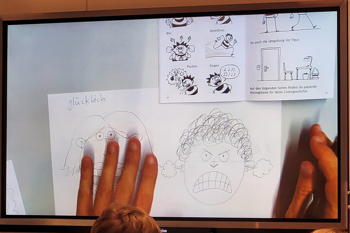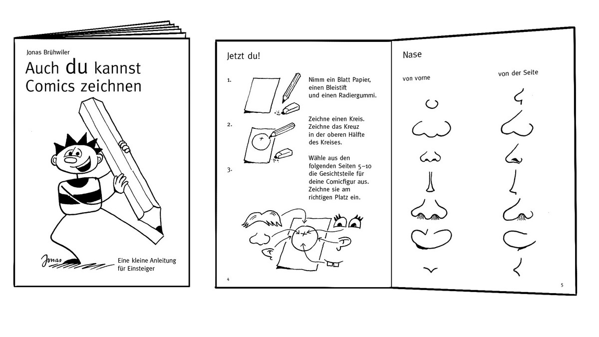 Die Schüler/innen werden selbst kreativ: Sie zeichnen Gesichter und Figuren und gestalten ihren eigenen Comicstrip. Dazu erhalten sie eine Anleitung «Auch du kannst Comics zeichnen», die Jonas Brühwiler speziell für diesen Workshop entwickelt hat. Benötigt werden Bleistifte, Radiergummis, Fineliner– und natürlich eine grosse Portion Fantasie.