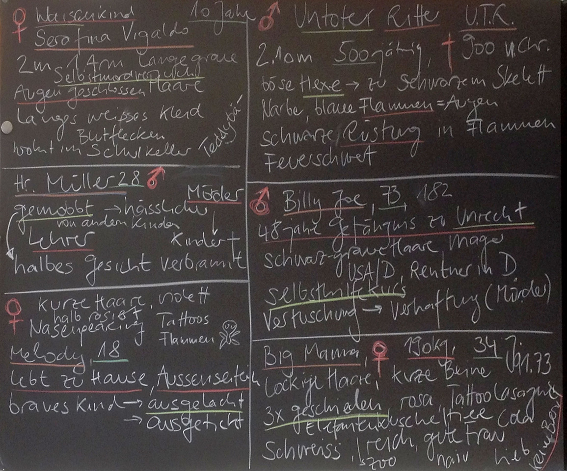 In der Klasse, in Gruppen und Einzelarbeit entstehen Konzepte, Raster und schliesslich Geschichten. Das fiktive Schreiben mit Figurenfindung, Erzählhaltung, Perspektive, Spannungsbogen (mit eingebauter Lesung) usw. wird ganz nebenbei reflektiert, am Ende hat jedes Kind seine eigene Geschichte.
