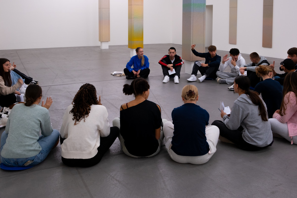 Die Schüler/innen bringen ihre eigenen Beobachtungen, Fragen und Gedanken ein und kommen in einen lebendigen Austausch über die gezeigten Werke. Dabei wird die Kunst zum Ausgangspunkt für gemeinsames Nachdenken und Diskutieren: Was beeinflusst unsere Wahrnehmung? Wann wird ein Raum selbst zur Skulptur? Und wie kann Kunst uns zum Mitmachen einladen?