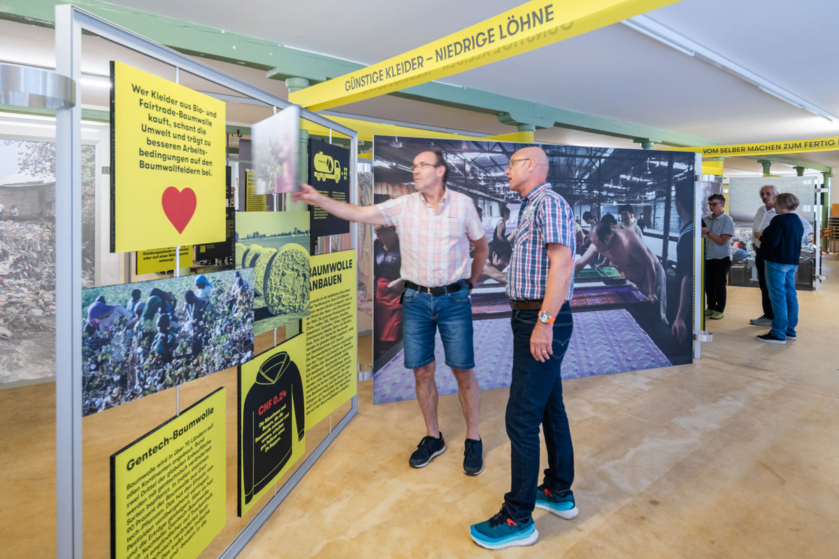 Die Ausstellung «mode macht geld» zeigt die heutige Lage der Fast Fashion-Industrie auf. Der Besuch regt zum gemeinsamen Nachdenken über die Vergangenheit, Gegenwart und Zukunft unseres Kleiderkonsums an.