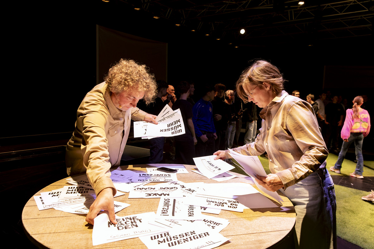In der interaktiven Performance «Regiert euch!» bewegen wir uns gemeinsam durch verschiedene Schauplätze der Demokratie und fragen: Können Demonstrationen etwas bewirken? Wie formen soziale Medien deine Meinung? Und was tun wir, wenn antidemokratische Tendenzen lauter werden? Die Bühne wird zum Spielfeld: Ihr entscheidet mit, wer an die Macht kommt, was gestärkt, was zurückgedrängt wird und welche Themen neue Aufmerksamkeit brauchen. So entsteht ein vielstimmiger Raum, der uns allen gehört. «Regiert euch!» zeigt, dass es sich lohnt, Demokratie zu verteidigen – sie lebt von euren Stimmen und eurem Handeln.