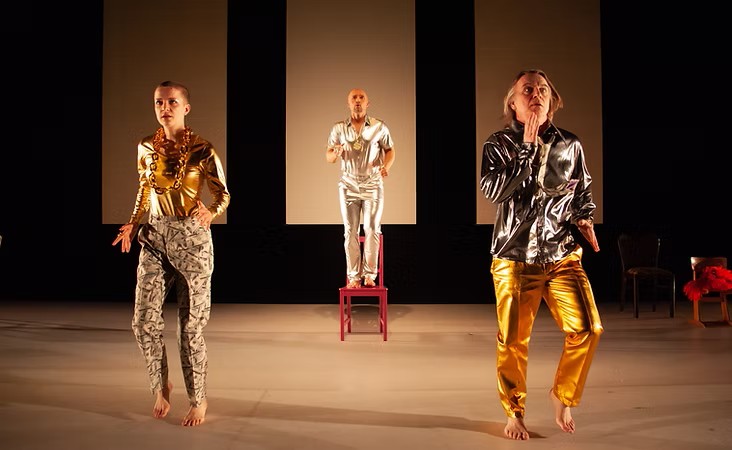 Das leidige, verwünschte Geld. Man kann es nicht essen, man muss es trotzdem haben, man soll nicht drüber sprechen und angeblich stinkt es nicht. Wir gehen täglich damit um und doch wissen wir erstaunlich wenig darüber. Wo kommt es her, was nützt es, wer macht die Regeln und was, wenn ich mich nicht daranhalte? Auf Basis eines Rechercheprojekts mit Schüler/innen erkunden drei Performer/innen in dieser vordergründig glitzernden Show die Mechanismen der Geldwirtschaft und fragen danach, was uns beim Thema Geld wirklich wichtig ist. Eine partizipative Performance mit Tiefgang und Unterhaltungswert auf den Punkt gebracht.