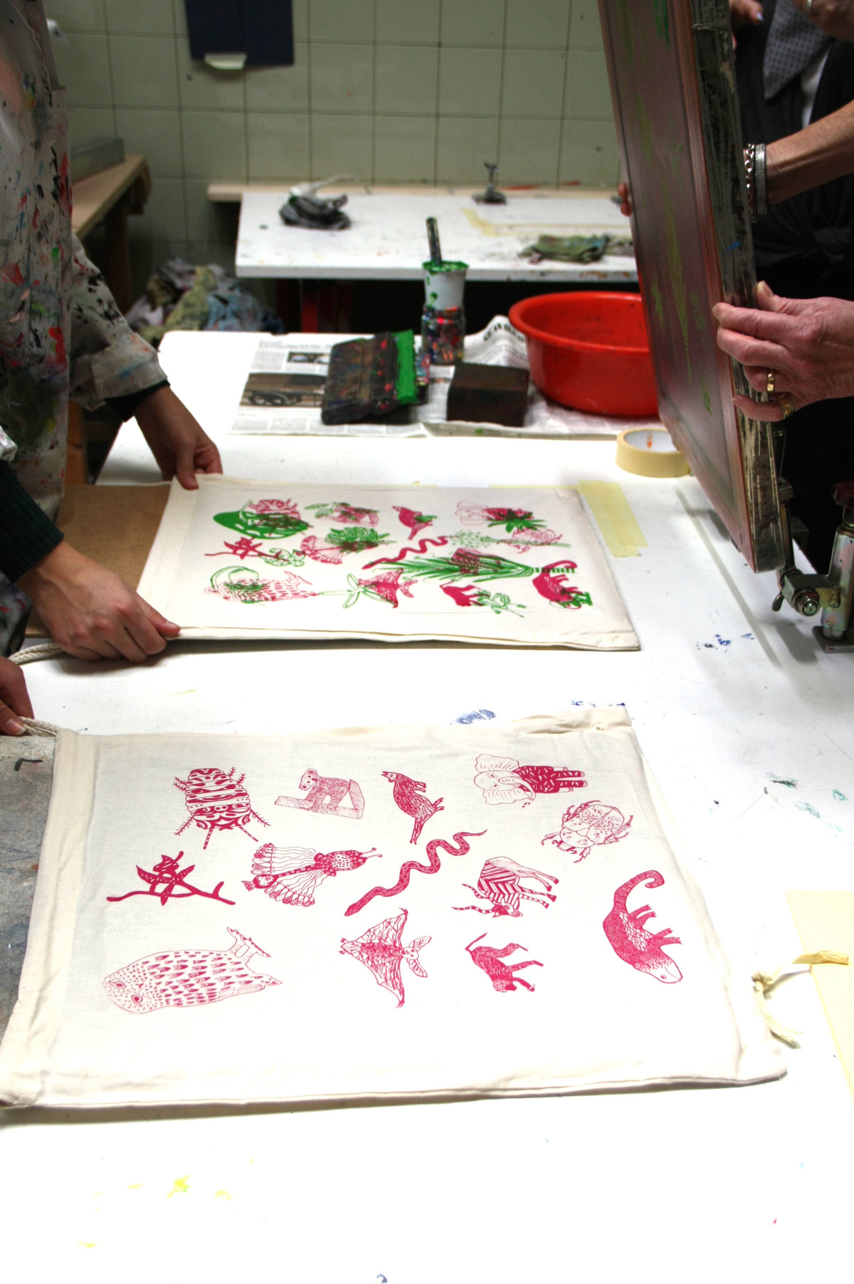 Wir heissen Schulklassen herzlich Willkommen in unserer Werkstatt für Siebdruck! Nach einer Einführung in die Technik des Siebdruckens legen die Schülerinnen und Schüler selber Hand an und bedrucken ein eigenes Turnsäckli. In der Siebdruckwerkstatt lernen sie die fotomechanische Schablonenherstellung kennen und tauchen ein in die Welt von Farben und Formen. Als Klassenarbeit gestaltet jede/r einzelne Schüler/in ein eigenes Motiv. Auf Wunsch ist auch das Einflechten von Unterrichtsthemen möglich.