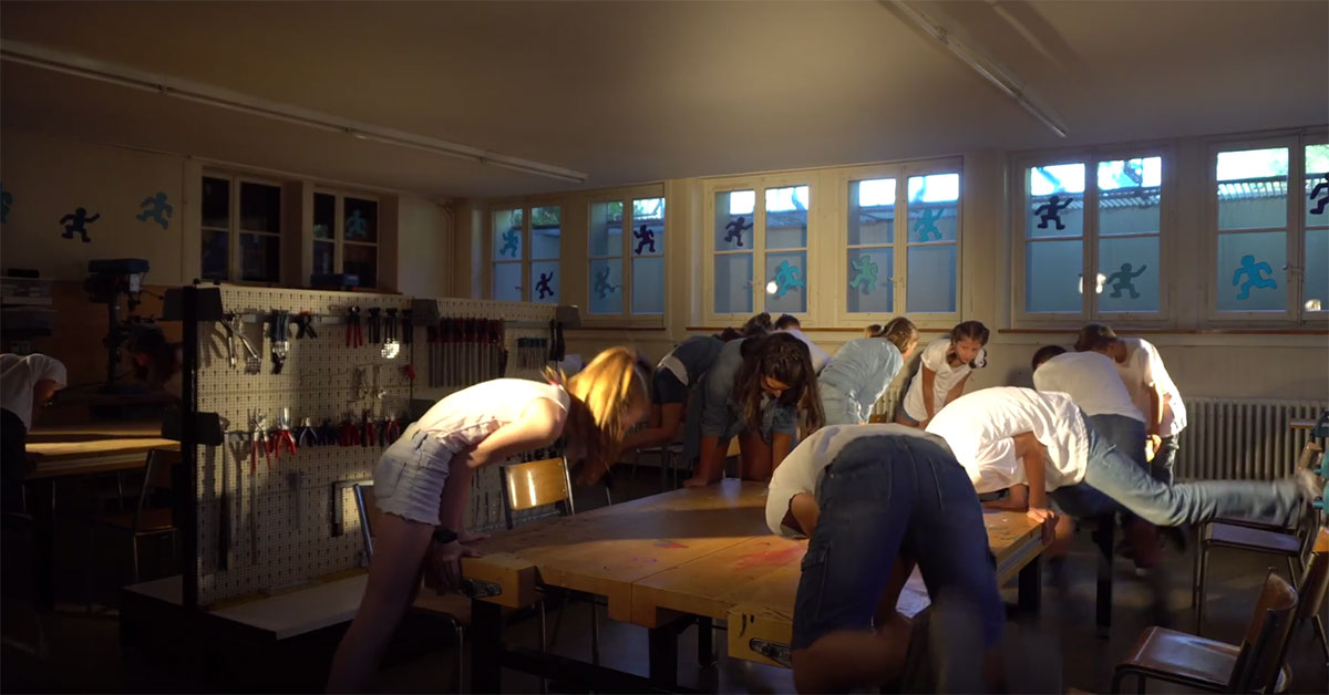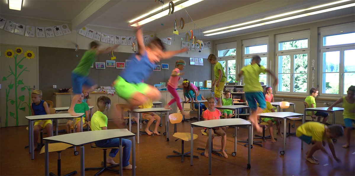 «Das tanzende Klassenzimmer» ist als Workshop von 90 Min konzipiert. Es lässt sich aber ausweiten auf ein ganzes (tanzendes) Schulhaus und kann über mehrere Tage gebucht werden.