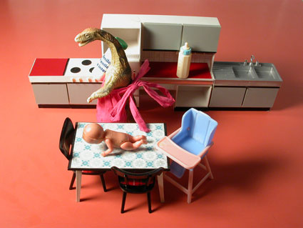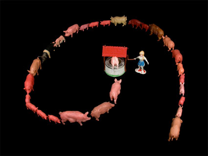 In Theres Liechtis (geb. 1968) Atelier klingen an jeder Ecke Geschichten an, Kindheitserinnerungen werden wach. Gut vorstellbar, wie sie spielerisch Trickfilme, Objekte und Zeichnungen entwickelt. Es entstehen unterhaltsame und skurrile Erzählungen. Die Puppen, Tiere und Spielsachen repräsentieren eine einfache Welt, es gibt Gut und Böse, schön und hässlich. Theres Liechti nutzt dieses Muster, führt ihre Darsteller aber nach und nach in Spannungen und in alltägliche Abgründe, wie sie auch im wahren Leben lauern.