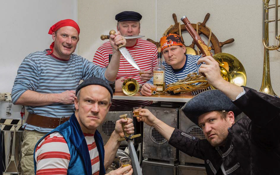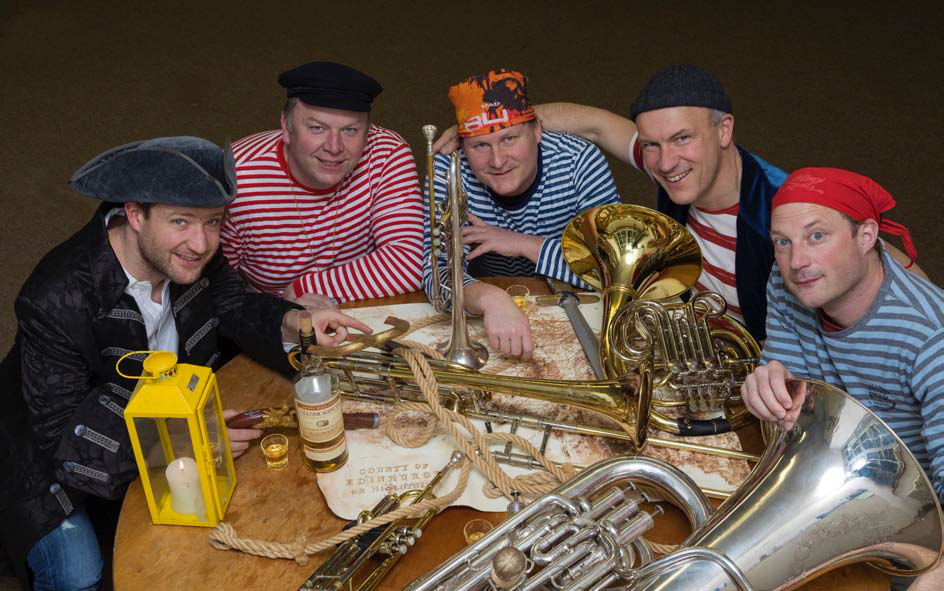 Eine musikalische Schatzsuche für fünf Piraten, fünf Blechblasinstrumente und viele mithelfende Piratenkinder. Spritzige Piraten- und Seefahrermusik von Alfred Newman, Vangelis, John Williams, Klaus Badelt, Rod Stewart und anderen mehr.